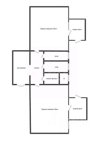 У здания отличная планировка. Два основных входа примыкают к большим квадратным помещениям. С обратной стороны здания есть вход под разгрузку. Большой грузовик спокойно подъезжает к зоне разгрузки, место не заставляется припаркованными машинами.