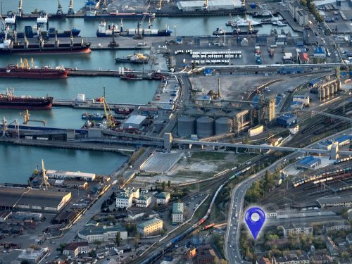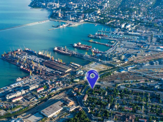 Рядом Больница моряков, небольшой частный сектор, смыкание дорог ул.Сакко и Ванцетти и Михаила Борисова. Здание находится на границе таких районов как Стандарт и Балка.