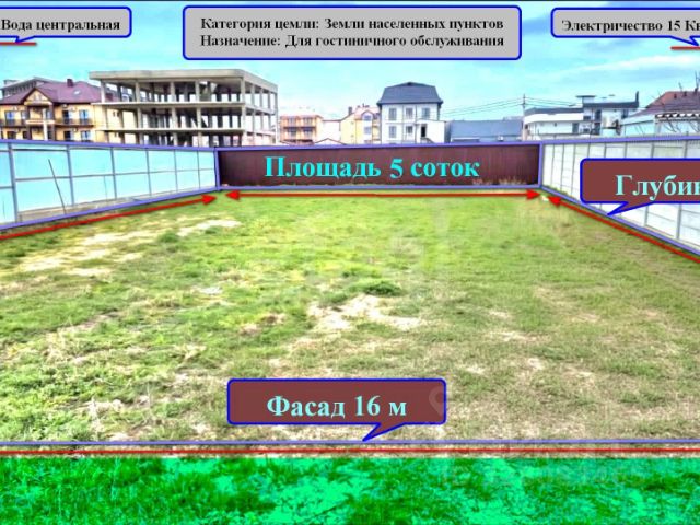 Объект 176375. Участок на второй береговой линии в Анапе: выгодное вложение в будущее Предлагаем эксклюзивный участок в курортной зоне Анапы — идеальная площадка для реализации коммерческих или жилых проектов. Ключевые преимущества Расположение: 1 км до песчаного пляжа (1520 минут пешком). Статус: все документы готовы. Готовность к строительству: участок подключён ко всем коммуникациям. Пространство: достаточно места для крупного объекта. Технические характеристики Площадь: 3.5 сотки Два Фасад: 14\25 м Электричество: по меже. Газ: по меже (подведение в кратчайшие сроки). Водоснабжение: центральное, по меже. Канализация: центральная, по меже. Ландшафт: чистый, без построек. Инфраструктура и окружение Участок находится в центре курортной зоны Анапы. В шаговой доступности: магазины; кафе; транспортные остановки. Возможные варианты использования Участок идеально подойдёт для: гостиницы; санатория; комплекса частных апартаментов; ресторана; жилого комплекса; иной коммерческой недвижимости. Почему стоит выбрать этот участок? Выгодное расположение — близость к морю и развитой инфраструктуре. Полная готовность к строительству — не нужно тратить время и средства на подключение коммуникаций. Простор для реализации любых идей — площадь и фасад позволяют возвести крупный объект. Готовый пакет документов — минимизация бюрократических процедур. Не упустите шанс стать владельцем участка в сердце курортной Анапы! Для записи на просмотр и уточнения деталей — звоните. Купить загородную недвижимость на улице Василия Маргелова в городе Анапа.