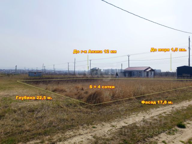 Продаётся земельный участок 4 сотки в 15 минутах от г. Анапа. Предлагаем вам уникальную возможность приобрести земельный участок, всего в 20 минутах до моря. Это идеальный вариант для строительства или инвестиций в курортную недвижимость. Категория земли: сельскохозяйственного назначения; Есть возможность развития и перевода земель. Транспортная доступность и развитая инфраструктура. 135 тысячи/сотка Возможна рассрочка. Есть онлайн показ. Буду рада сотрудничеству с агентом.