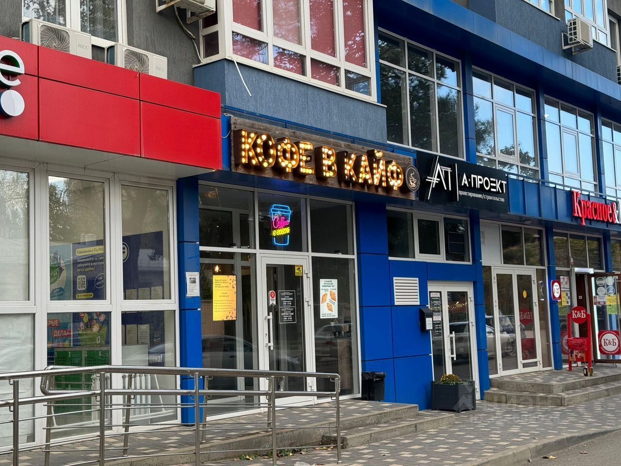 Соседи: якорные арендаторы (слева FiхРriсе, справа Красное/Белое, Wildbеrriеs, Аптека Апрель)