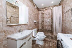 Квартира расположена на 19 этаже. В интерьере каждая деталь продумана до мелочей для вашего комфорта. Две отдельные спальни с мягкими постелями предоставят отдых после насыщенного дня. В каждой спальне есть свой санузел, чтобы гости могли наслаждаться личным пространством и комфортом.