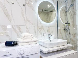 В ванной комнате душевая система, стиральная машина, фен, тапочки, гигиенические принадлежности, всё это поможет вам чувствовать себя свежо и комфортно.