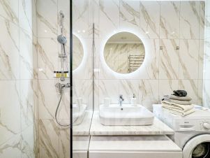 В ванной комнате душевая система, стиральная машина, фен, тапочки, гигиенические принадлежности, все это поможет вам чувствовать себя свежо и комфортно.