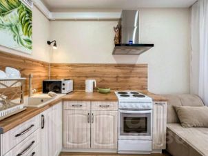 Кухня со всем необходимым: плита, духовка, чайник, микроволновка, посуда и кухонная утварь;