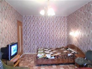 Квартира с уютной планировкой: комната (двуспальная кровать, шкаф для одежды, диван, телевизор, тумбочка, интернет, кондиционер), выход на лоджию;