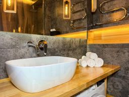 В номере вы найдёте халат. Оснащение зависит от выбранной категории номера.