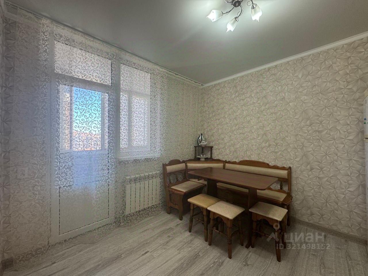 Квартира находится на 10 этаже 21-этажного здания и занимает 36 квадратных метров. Просторная кухня площадью 10 квадратных метров.