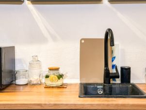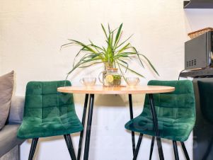 На КУХНЕ холодильник, микроволновая печь, сенсорная варочная панель, электрический чайник, моющие средства , раскладной диван на два спальных места, и весь кухонный инвентарь КУХНЯ И КОМНАТА РАЗДЕЛЬНЫЕ.
