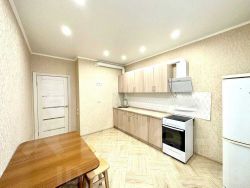 Кухня оборудована холодильником, плитой, духовкой, кухонной мебелью.