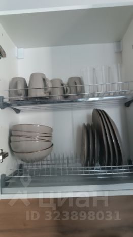 Полный набор посуды и средств для уборки.