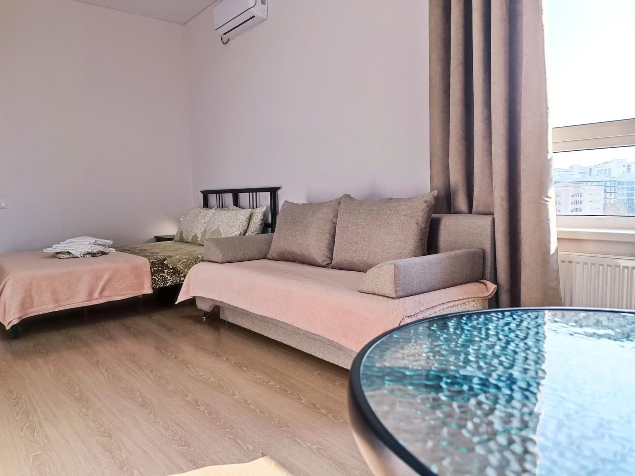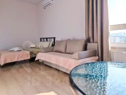 Однокомнатные апартаменты для 6 гостей. Спальные места: 2 дивана и двуспальная кровать. В квартире есть необходимое: кабельное ТВ, Wi-Fi, стиральная машина, кондиционер, кухня оборудована техникой и посудой. Полотенца и постельное белье предоставляется. Есть балкон.