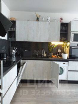 В кухне - гостинойкухонный гарнитур, электроплита, духовка, микроволновая печь, посудомоечная, стиральная машины, обеденный стол, двухкамерный холодильник, диван, телевизор, кондиционер.