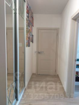 Санузел с ванной, стиральная машина. В прихожей, шкаф-купе зеркальный для одежды.
