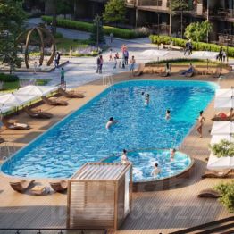 Закрытая территория, подогреваемый бассейн, детские площадки, зеленая территория. До моря 10 минут пешком. Песчаный пляж Феличита.