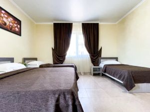 (30кв.м., прихожая, двуспальная кровать, две односпальных кровати, дополнительное место еврораскладушка или детская кроватка бесплатно, душ, туалет, ТВ, холодильник, кондиционер, балкон) В цену включено: проживание в номере, бассейн с подогревом, ежедневные анимационные программы, детская площадка, батут, встреча на ЖД вокзале. Бесплатно прогулочные коляски, детские кроватки, стульчики для кормления, ванночки, горшки и т.п.