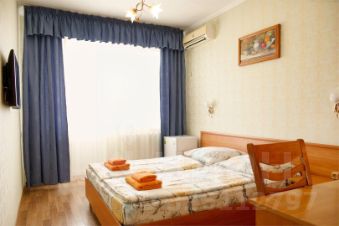 В номере одна двуспальная кровать.