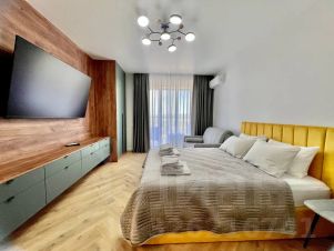 Спальня (двухспальная кровать, диван-кровать, шкаф, смарт тв, сплит);