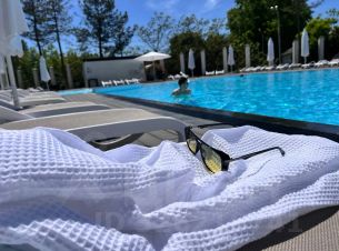 Подогреваемый бассейн с детской зоной, с шезлонгами и зонтиками, под присмотром сотрудника безопасности. Бассейн работает с мая по октябрь.
