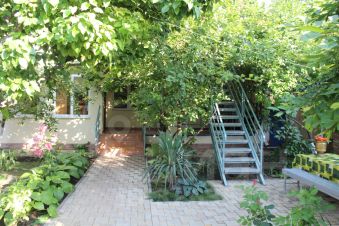 Комфортабельный 3-х местный номер на 1-ом этаже в здании в глубине двора. В номере: двуспальная кровать (160см), односпальная кровать, шкаф, тумбочки, зеркало с призеркальным столиком, холодильник, телевизор, вентилятор. Номер прохладный, т. к. находится в тени деревьев, не требует кондиционера, что очень важно для отдыха с детьми.Большая просторная ванная комната с ванной в форме джакузи. На террасе персональная деревянная летняя мебель.