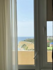 Вам не надо считать никакие минуты и метры до моря — Вы уже на море. Достаточно открыть окно и квартира наполнится целебным морским воздухом. В квартире тихо. Ночного шума нет. На окнах в спальнях рулонные шторы блэк аут. Спальни изолированы друг от друга массивными дверями, коридором и находятся в разных сторонах квартиры- полное уединение. У каждой спальни свой санузел.
