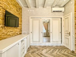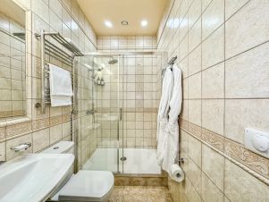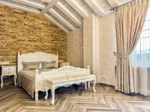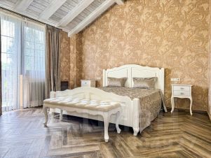 Просторный номер Люкс площадью 100 кв.м. — это идеальное решение для тех, кто ценит комфорт и уют. Номер состоит из двух отдельных спален, каждая с собственной ванной комнатой, и стильной кухни-гостиной, оборудованной всей необходимой техникой: индукционной плитой, духовым шкафом, посудомоечной машиной, холодильником и набором посуды. В номере могут с комфортом разместиться до 6-ти человек, что делает его отличным выбором для семей или компании друзей.