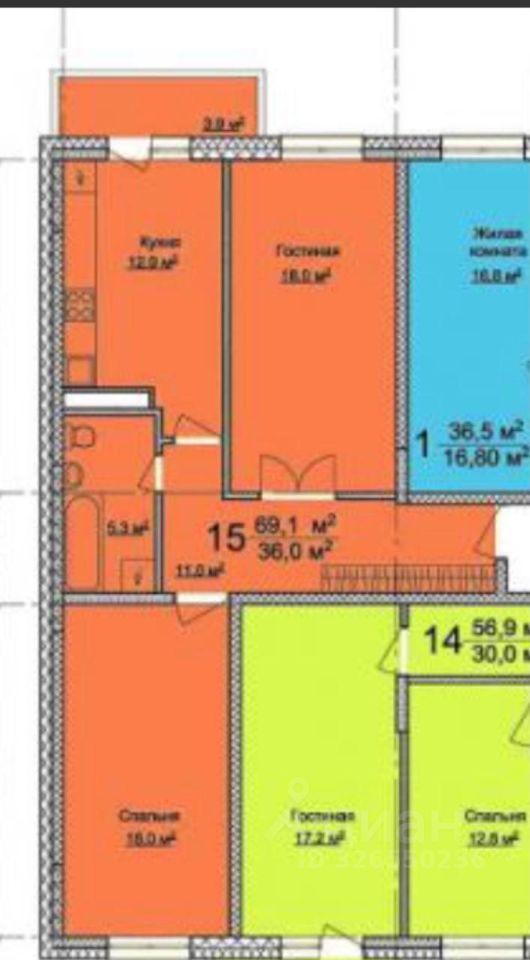 69,1 м²