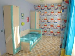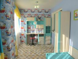 В квартире 7 спальных мест: одна двуспальная кровать, один двуспальный диван, два кресла-кровати, одна односпальная кровать.