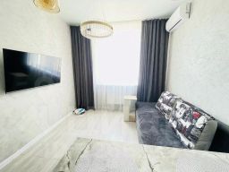Подходящий вариант для большой компании: апартаменты "Квартира уютная в новом жилом комплексе" находятся в Анапе. Эти апартаменты расположены в 3 км от центра города. Рядом с апартаментами — Центральный пляж Анапы, Аквапарк Золотой пляж и Парк 30-летия Победы.