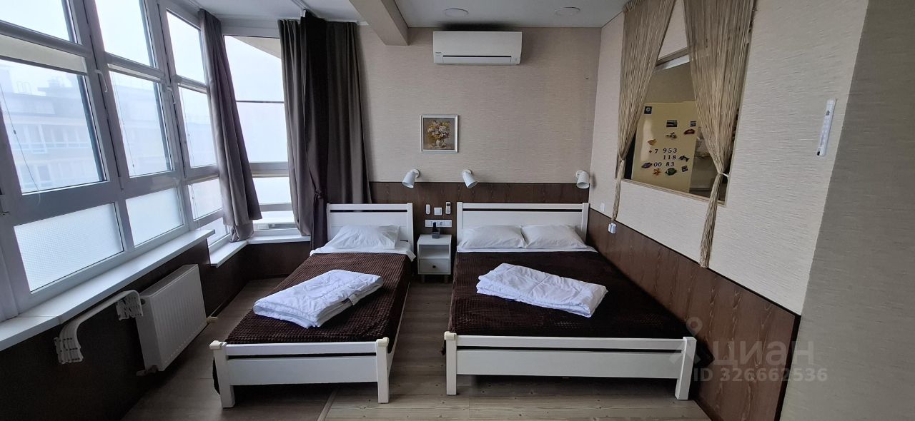 С апреля месяца, в городе - курорте Анапе, сдаётся уютная студия с очень красивыми видами из окон. Она расположена на 16 этаже дома в ЖК "Кавказ", рядом с широким песчаным пляжем. В квартире две новые кровати из массива сосны с новыми беспружинными матрасами (140x200, 90x200), кресло (80x180). Кухня отгорожена, диван на кухне раскладывается, это ещё одно спальное место -(90x180 см).В студии есть всё для нормального проживания - чистое постельное бельё, новые летние одеяла, кухонные принадлежности. В комнате выполнена звукоизоляция стены с соседями, а сверху квартиры находится технический этаж. Соседей в комнате не слышно вообще! Окна студии расположены на 3-и стороны таким образом, что их можно использовать для естественной вентиляции и не включать кондиционер На окнах москитные сетки и шторы блэкаут. Сделан свежий ремонт комнаты и прихожей. Произведена профессиональная чистка кондиционера. Пляж " Кавказ", этот район Пионерского проспекта и эта студия - идеальный вариант для отдыха семье с детьми из 3-х - 4-х человек. Дорога до арки "Пляж" от этого дома по сосновой аллее, короче, чем от других корпусов, и займёт не более 5 минут пешком. Красивые виды с высоты сделаны из студии и с общего балкона. Вы каждый день сможете наблюдать восходы солнца и луны, смотреть на предгорья Кавказских гор, любоваться морским прибоем, дюнами пляжа "Кавказ" и закатами солнца. Цена зависит от даты и продолжительности проживания. Аренда от 7 дней. Без животных. Курить нельзя.