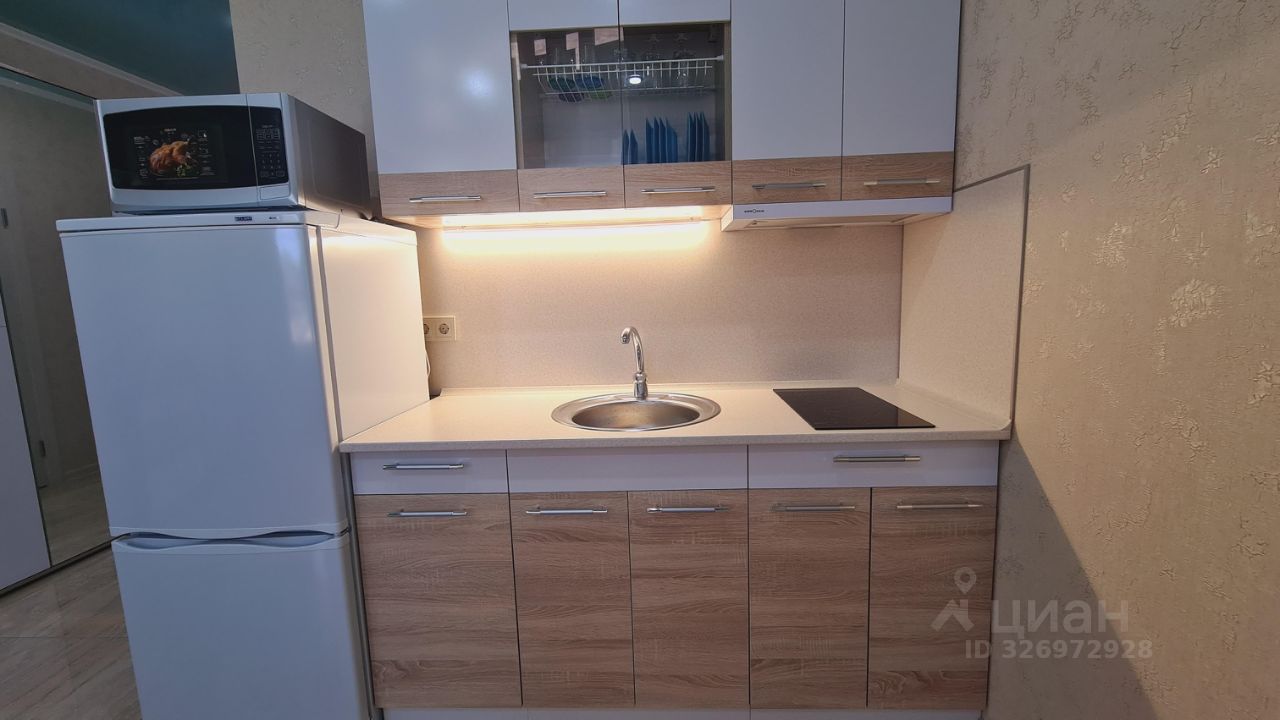 - Кухня: холодильник, микроволновая печь, индукционная плита, посуда, столовые приборы, обеденный стол со стульями,
