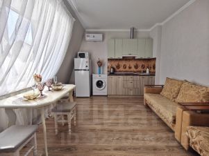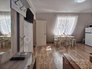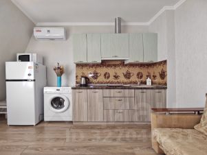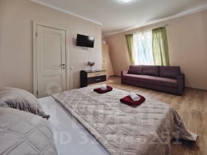 В гостиной есть дополнительно раскладывающиеся диван и кресло, а также кухонная зона, оборудованная техникой и посудой.