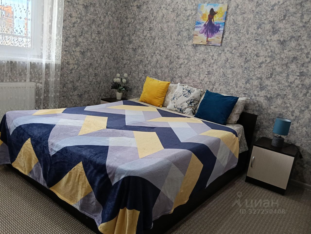В спальне расположена большая двуспальная кровать и чистое постельное белье. Рядом гардеробная комната. Ванная и туалет раздельные. В ванной комнате есть большая угловая ванная, умывальник, стиральная машина, чистые полотенца, средства гигиены, фен. Кухонная зона расположена в просторной гостиной, где имеется электрическая плита, микроволновка, электрический чайник, посуда для приготовления пищи, тарелки, кружки, бокалы, столовые приборы. Так же в кухонной зоне находятся обеденный стол т стулья. Рядом большой двуспальный дивад, телевизор и кондиционер. На балконе есть сушилка для белья. Гладильная доска и утюг находятся в гардеробной. В прихожей имеется двустворчатых шкаф.