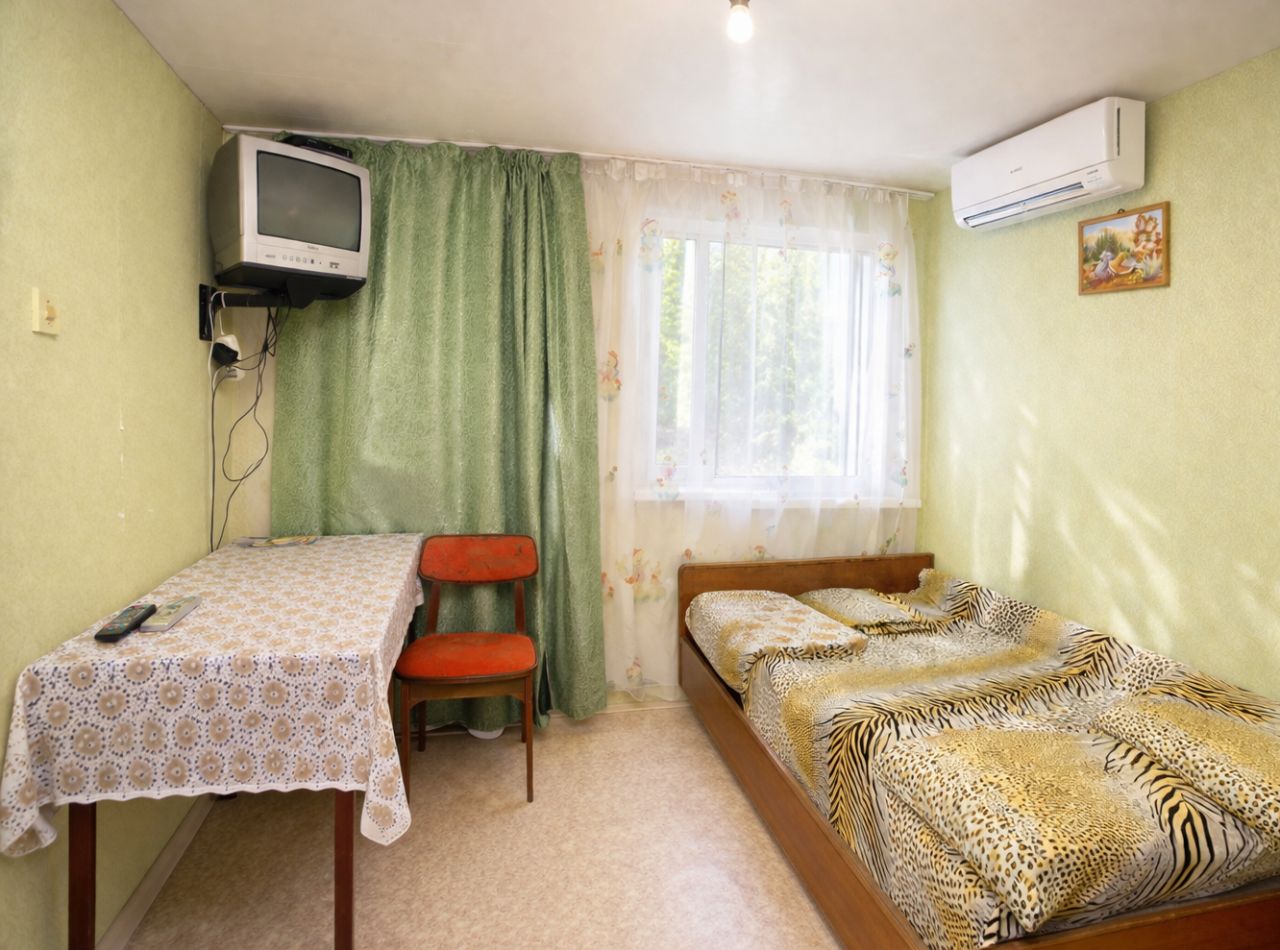 Сдается посуточно маленькая двухместная комната эконом на втором этаже с общей ванной, в частном секторе. Находимся в туристическом центре Анапы, рядом с главным песчаным пляжем и всей инфраструктурой. До моря 3 минуты ходьбы. Для жильцов есть кухня и бесплатный Wi-Fi. Рядом столовые и кафе.