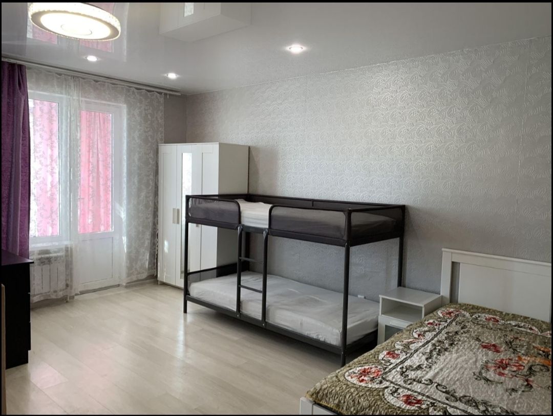 Квартира расположена на первом этаже монолитного дома с пассажирским лифтом. В квартире выполнен косметический ремонт, что создает приятную атмосферу. Из мебели имеются шкаф,2 спальная кровать и 2х ярусная кровать, а также необходимая бытовая техника: холодильник и стиральная машина.