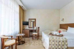 Это комфортные 1-комнатные двухместные номера с видом на бассейн, расположенные на первом и втором этажах трехэтажных коттеджей. В каждом номере категории СТАНДАРТ: одна двуспальная кровать (или две односпальные кровати) с ортопедическим основанием, прикроватная тумбочка, ЖК телевизор, функциональный стол, журнальный столик, шкаф для одежды с плечиками, большое зеркало, система индивидуального кондиционирования, индивидуальный сейф, бесплатный Wi-Fi, внутренний телефон, мини холодильник, санузел с душевой, тапочки, фен, средства личной гигиены, щётка для обуви и одежды, рожок, набор полотенец, электрический чайник, сушилка для белья. Рядом с каждым номером своя терраса / балкон с мебелью из ротанга для принятия пищи или просто для приятного времяпрепровождения.