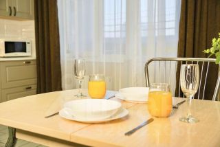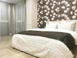 Современный интерьер, новая качественная мебель и хорошая звукоизоляция сделают ваш отдых в отпуске или в командировке максимально комфортным. Панорамные окна выходят в благоустроенный двор, заливая квартиру дневным теплым светом.