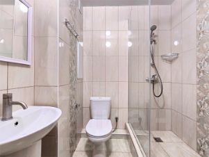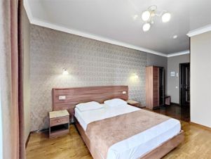В номере: двуспальная кровать, 2 тумбочки, туалетный столик, журнальный столик, шкаф платяной, вешалка в прихожей. Удобства: Кондиционер, холодильник, телевизор, сейф, балкон со столом и стульями, комплект гостевых принадлежностей (индивидуальный комплект банных и лицевых полотенец, мыло жидкое, таз, бельевые веревки на балконе, туал бум. стаканы). Напольное покрытие плитка.