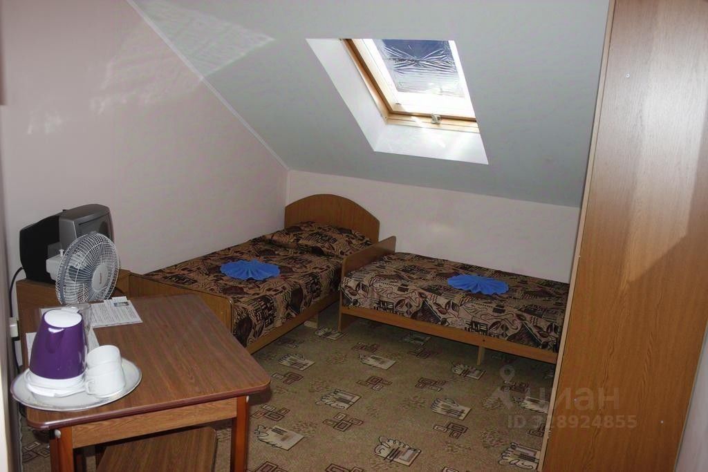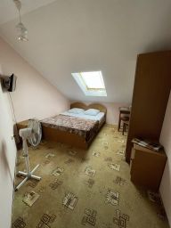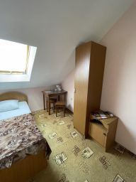В номере: необходимая мебель, зеркало, телевизор, эл.чайник, вентилятор, ковровое покрытие. На этаже: два санузла (в каждом - душевая кабина, умывальник, унитаз), два больших холодильника, сплитсистема. Номера расположены на 4- м этаже, мансарда.