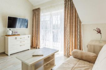 Гостям предлагают для размещения номера Стандарт, Комфорт и Люкс. Во всех есть кондиционер, телевизор, холодильник и собственная ванная комната с туалетно-косметическими принадлежностями.