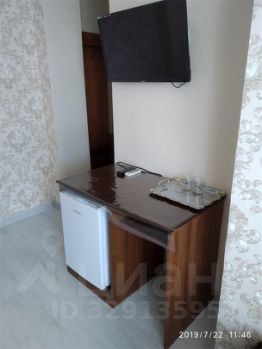 В комнате двухспальная кровать, кресло-кровать, шкаф для одежды, стол, холодильник, прикроватные тумбочки, телевизор с плоским экраном, холодильник,сплит-система, балкон.