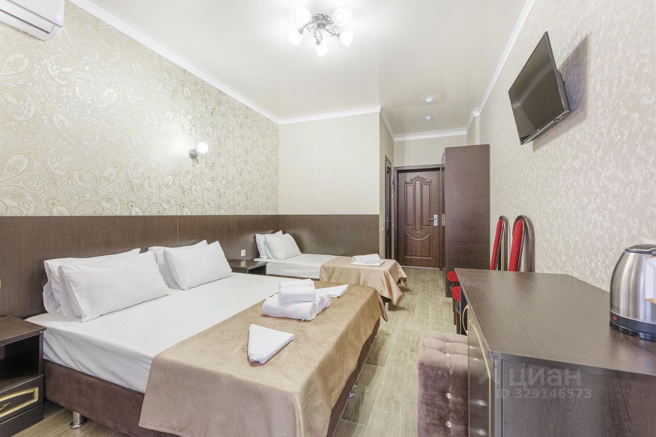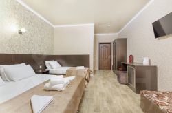Гостевой дом Фараон располагается в курортном городе Анапа, возле ручья Можепсин. В 10 минутах ходьбы расположен пляжный, развлекательный Детский центр и Черноморское побережье. Поблизости спортивные комплексы, заведения, магазины и кафе. Аэропорт в 6,7 км. До ж/д вокзала 3,2. Гостевой дом предлагает комнаты различной категории, оснащенные двуспальными и односпальными кроватями, мягкой мебелью в виде диванов и кресел, телевизорами и чайниками. Постояльцам предоставлены отдельные санузлы с душем и полотенцами. Пообедать предлагается в собственном ресторане, где будут ожидать вкусные и сытные обеды, прохладительные напитки и приветливые сотрудники. За дополнительную плату есть возможность организовать барбекю, для тех кто любит блюда на мангале. На территории гостевого дома имеется просторная и комфортная зона отдыха, обустроенная крытыми беседками и лежаками для принятия солнечных ванн. На крыше гостей ждет плавательный бассейн с подогревом и прекрасным пейзажем. Для детей предусмотрена игровая площадка с качелями. Спальные места представляют собой двуспальную и односпальную кровати, имеется альтернативная конфигурация с тремя односпальными кроватями. В комнатах для размещения имеется доп. место. Современная мебель и качественные материалы, эргономичная планировка, эксклюзивные дизайнерские решения — все создает здесь уютную и приятную обстановку, располагающую к полноценному отдыху. Во всех комнатах: санузел с душем, сплит-система, TV, холодильник, интернет Wi-Fi, прикроватные тумбочки, комод, шкаф, а так же фен и сейф.