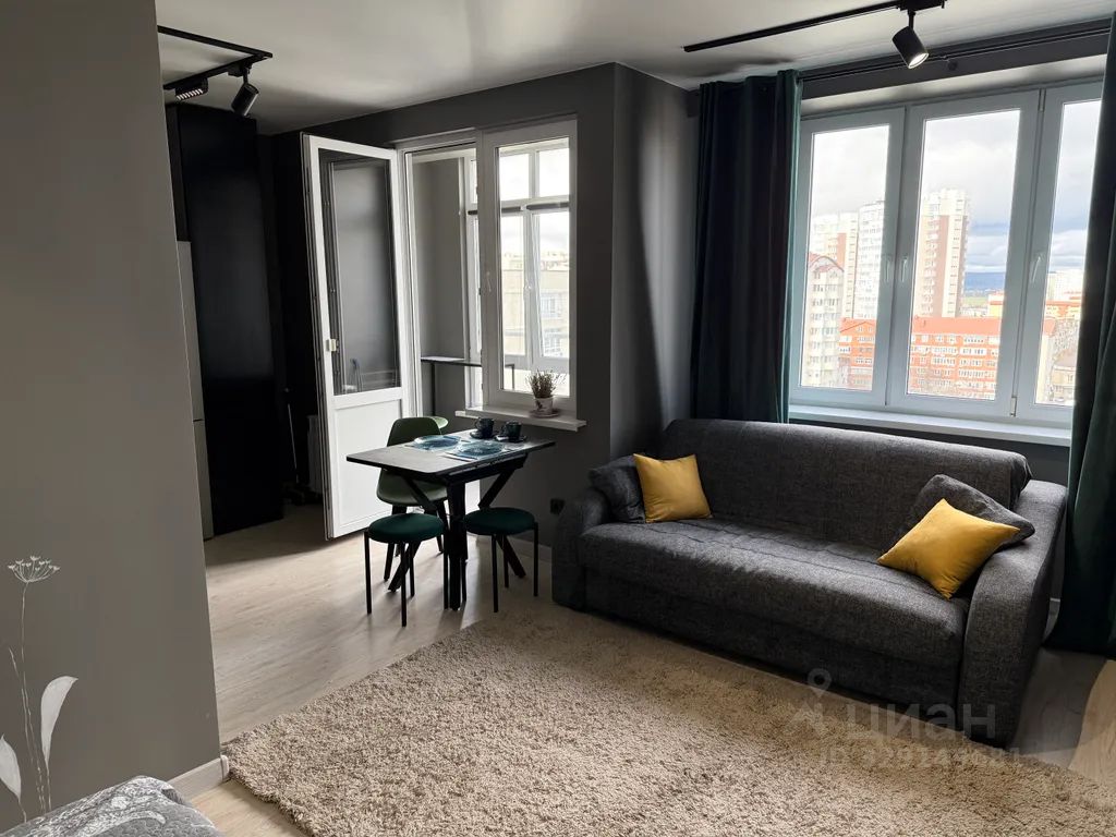 Сдается просторная, уютная квартира-студия в районе высокого берега в ЖК комфорт класса "Южный", всего в 10 минутах ходьбы от морского побережья.