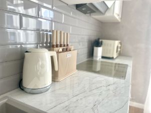 Кухня - вся необходимая техника для комфортного проживания холодильник, чайник, микроволновка, духовой шкаф, индукционная варочная поверхность, стиральная машина, посуда