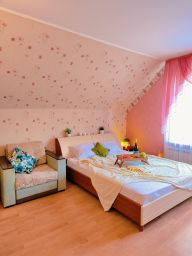 На выбор гостям предлагаются комнаты нескольких категорий. Каждая из них имеет удобную мебель, собственный санузел и балкон. Интерьер выполнен в светлых пастельных оттенках, располагающих к отдыху.