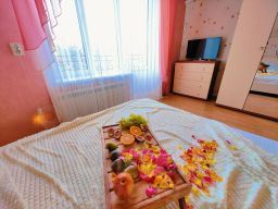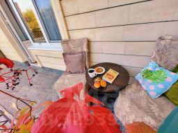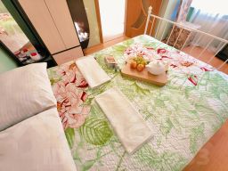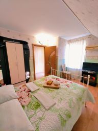 5-ти местные 2-х комнатные апартаменты с мини-кухней. Лучший вариант для отдыха молодой семьи с детьми или большой компании друзей. В номере имеется все необходимое для комфортного отдыха: мини-кухня, мультиварка, чайник, набор посуды, столовые приборы, мини-холодильник, сплит-система кондиционирования, телевизор. Возможность размещения до 5 человек, в номере две двуспальные кровать и кресло-кровать. Номер с индивидуальным балконом и мебелью для отдыха и дополнительно доступна большая общая терраса с зоной отдыха.