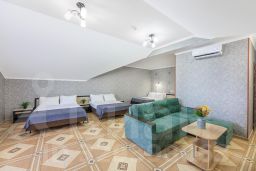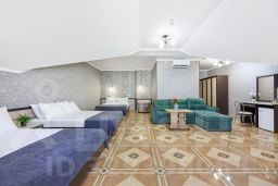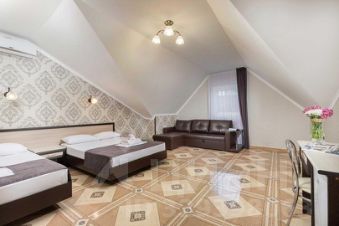Однокомнатный номер делюкс на мансарде без балкона, до 4 человек. В номере предоставлены 2 двухспальные кровати, выделенная рабочая зона с письменным столом, комфортная ванная комната с индивидуальными косметическими принадлежностями.