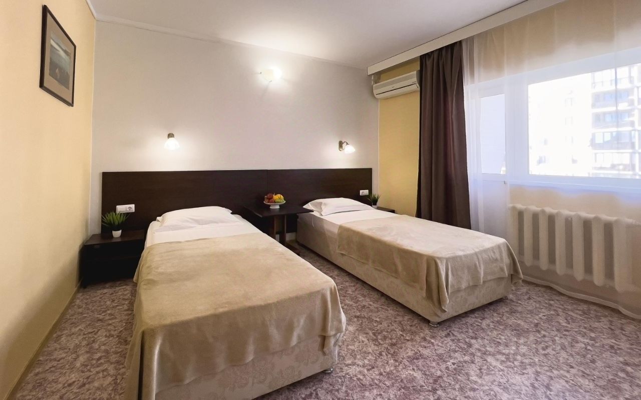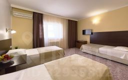 Однокомнатный номер площадью 20 м2 с двумя односпальными и одной двуспальной или тремя односпальными кроватями и балконом. Санузел номера оснащен душем. В номере: кондиционер, телевизор, мини-холодильник, шкаф для одежды, тумба, стул, зеркало, телефон. Идеально подходит бизнес-туристам и друзьям.