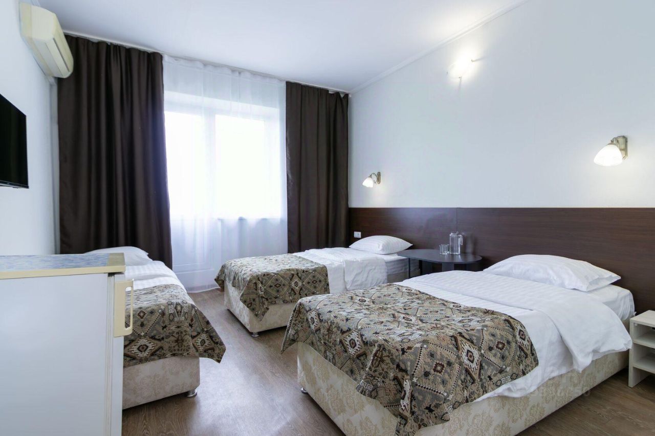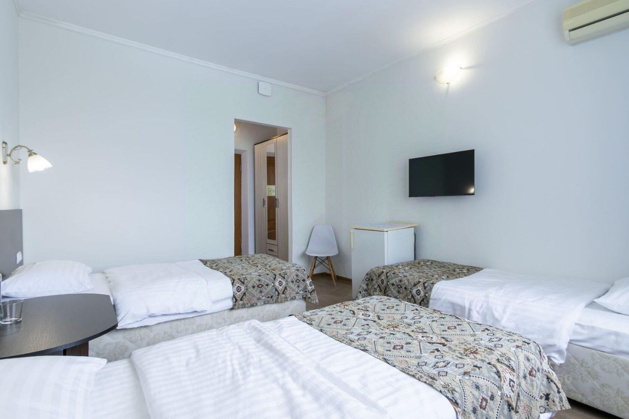 Однокомнатный номер площадью от 18,5 до 20 м2 с тремя односпальными кроватями . Санузел номера оснащен душем. В номере: кондиционер, LED телевизор, мини-холодильник, шкаф для одежды, тумба, стул, зеркало, телефон журнальный столик. Идеально подходит семьям, бизнес-туристам и друзьям.