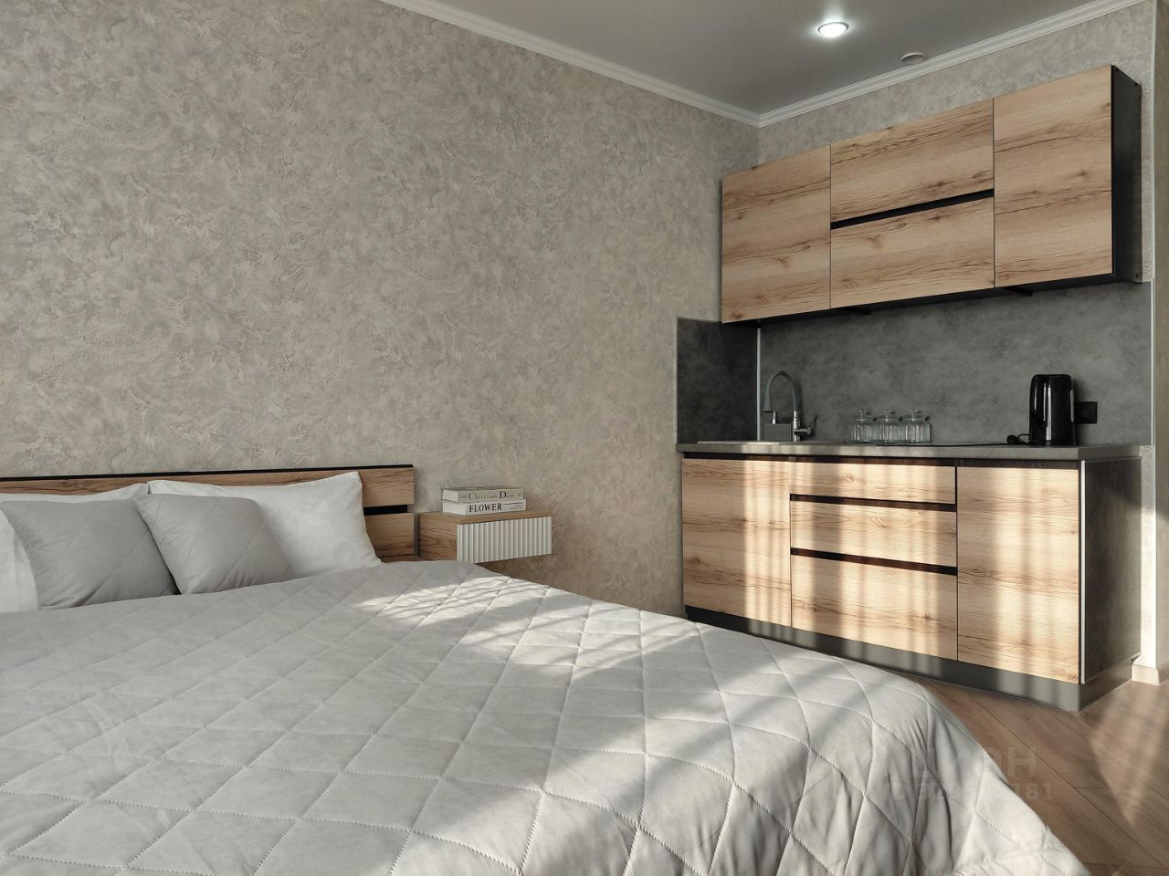 В студии совершенно новая мебель , новая бытовая техника - квартира полностью обустроена , евроремонт.